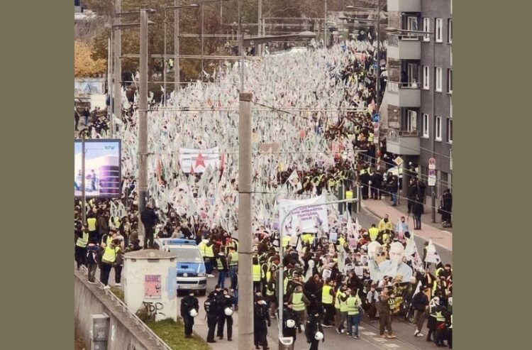 Σήμερα το απόγευμα, διαδηλωτές έκαναν πορεία στο κέντρο της Κολονίας, κρατώντας πλακάτ με κύριο σύνθημα «Λευτεριά στον Αμπντουλάχ Οτζαλάν» μαζί με την εικόνα του ιδρυτή και ιστορικού ηγέτη του PKK.