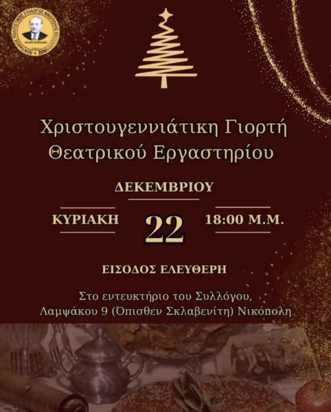 Χριστουγεννιάτικη γιορτή ετοιμάζει το θεατρικό εργαστήρι του Ποντιακού Πολιτιστικού Συλλόγου Νικόπολης «Φίλων Κτενίδης».