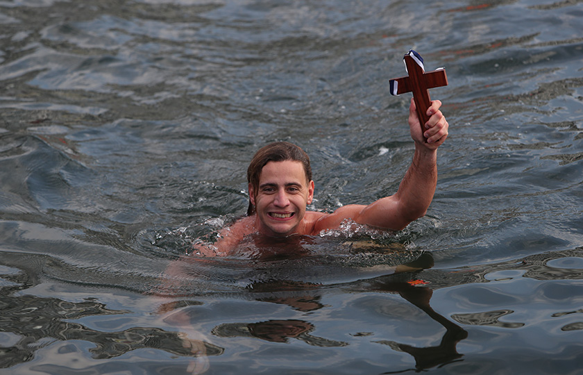 Ένας Πατρινός, ο 25χρονος Μάρκος Αναστασόπουλος, έφτασε πρώτος στον Τίμιο Σταυρό μεταξύ των 53 κολυμβητών που βούτηξαν στα νερά του Θερμαϊκού κατά την τελετή αγιασμού των υδάτων, στην πρώτη προβλήτα του λιμανιού της Θεσσαλονίκης.