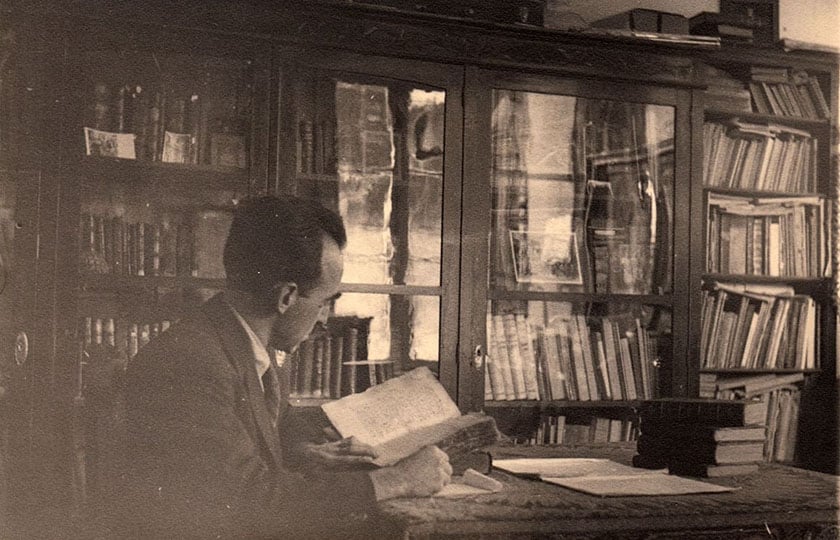 Μελετώντας χειρόγραφο, το 1930 (πηγή: kepem.gr)