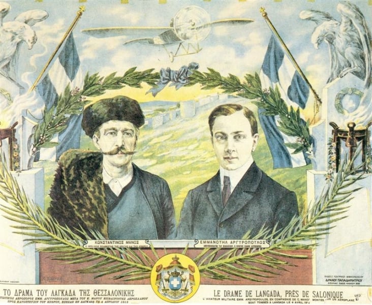 Στην τελευταία του πτήση, δίπλα του βρισκόταν ο Κωνσταντίνος Μάνος, πολιτικός, στρατιωτικός και λογοτέχνης, θείος της Ασπασίας (Μάνου), συζύγου αργότερα του πρόωρα χαμένου από δάγκωμα πιθήκου βασιλιά Αλέξανδρου. Η παρουσία του σε στρατιωτική αποστολή δεν ήταν ασυνήθιστη για τα δεδομένα των Βαλκανικών Πολέμων, όπου πολίτες συμμετείχαν ενεργά σε διάφορες μορφές επιχειρήσεων.