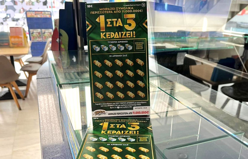 Το νέο… trend στα παιχνίδια του ΣΚΡΑΤΣ, το «1 στα 3 κερδίζει!», είναι διαθέσιμο εδώ και λίγες ημέρες στα καταστήματα ΟΠΑΠ όλης της Ελλάδας. Ο καινούργιος λαχνός, προσφέρει 20 ευκαιρίες για κέρδη που ξεπερνούν τα 11 εκατ. ευρώ συνολικά, ενώ το μέγιστο έπαθλο του παιχνιδιού φτάνει τις 500.000 ευρώ.