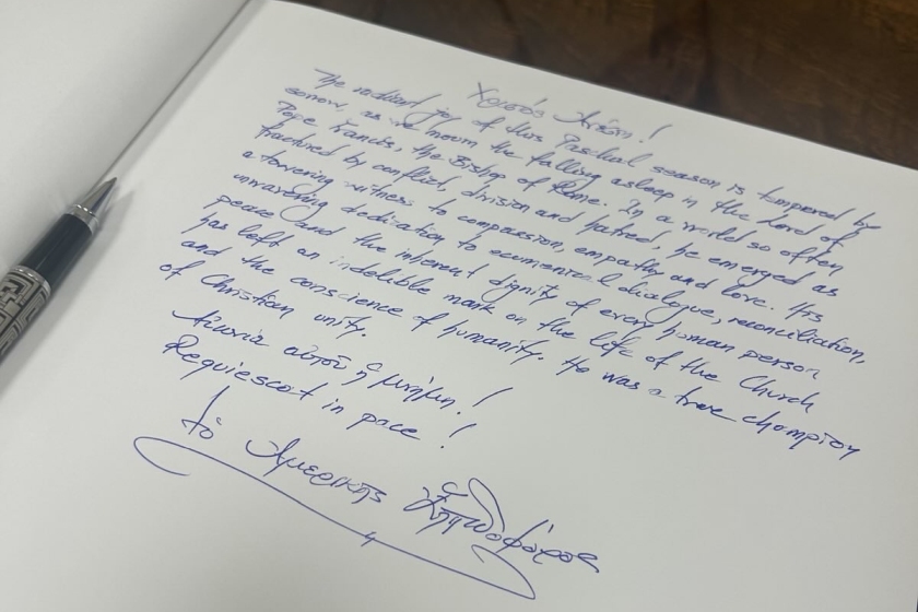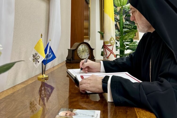 Νωρίτερα ο Αρχιεπίσκοπος υπέγραψε το επίσημο συλλυπητήριο βιβλίο στη Μόνιμη Αποστολή Παρατηρητών της Αγίας Έδρας στα Ηνωμένα Έθνη.