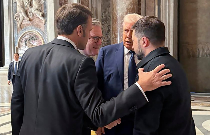 Μετά το τετ-α-τετ Τραμπ-Ζελένσκι, οι δύο πρόεδροι συναντήθηκαν και με τον Γάλλο ομόλογό τους Εμανουέλ Μακρόν και τον Βρετανό πρωθυπουργό Κιρ Στάρμερ, όπως ανακοίνωσε η γαλλική Προεδρία.
