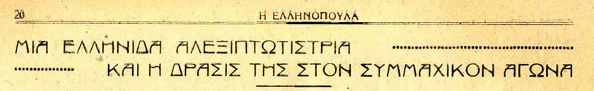 Μια γνήσια Ελληνοπούλα, μια άγνωστη μέσα στις τόσες άλλες, μια Ελληνοπούλα από κείνες που πρόσφεραν ανεκτίμητες υπηρεσίες στον συμμαχικό αγώνα, από κείνες που δούλεψαν γιατί πίστευαν στην Ελλάδα και στην αντίσταση, γιατί πίστευαν στη νίκη, είχε την καλωσύνη ύστερα από παράκλησί μας να μας πη λίγα από τη ζωή της και τη δράση της, τόσο στο εσωτερικό μέτωπο, από τον Ελληνοϊταλικό πόλεμο και δω, όσο και στη Μέση Ανατολή. Αλλ’ ας αφήσουμε την ίδια τη Δίδα Σ. Στεφανίδου να μιλήση.