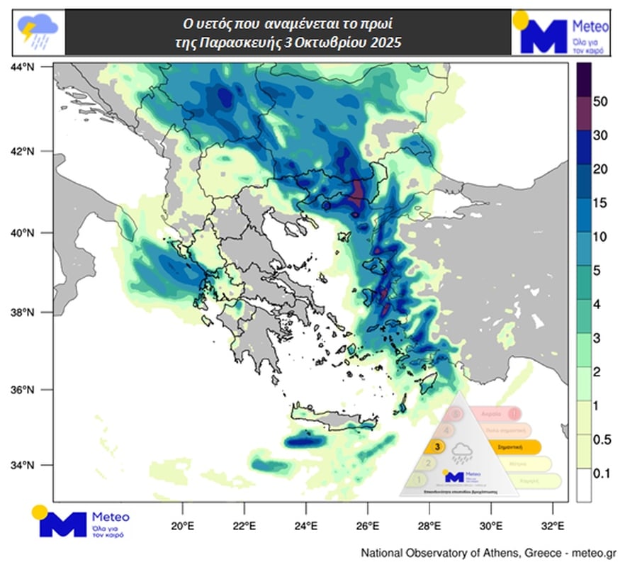 Τα έντονα καιρικά φαινόμενα που θα διαρκέσουν μέχρι και την Παρασκευή (3 Οκτωβρίου), από απόψε θα περιοριστούν στην κεντρική και ανατολική Μακεδονία, τη Θράκη και αύριο Παρασκευή θα επεκταθούν στα νησιά του Ανατολικού Αιγαίου και τα Δωδεκάνησα.