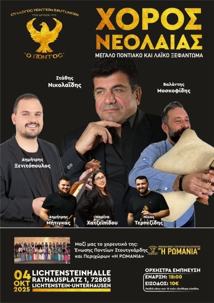 Χορό νεολαίας οργανώνει σήμερα, Σάββατο, ο Σύλλογος Ποντίων Reutlingen «Ο Πόντος» με ήχους από τον Πόντο και καλεσμένους από την Ελλάδα.