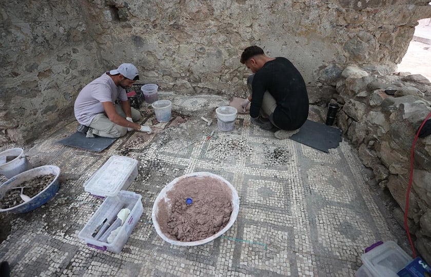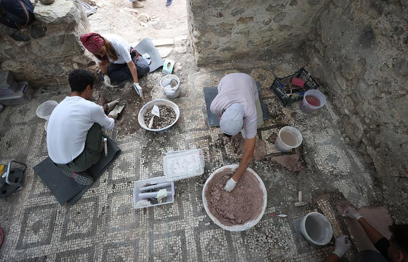 «Φέτος επικεντρωθήκαμε στις περιοχές των νεκροπόλεων, στα λουτρά, στα οικιακά συγκροτήματα και στις εκκλησίες», ανέφερε. «Στην είσοδο της πόλης αποκαλύψαμε το δάπεδο της εκκλησίας υπ’ αριθμόν 1. Ολόκληρη η επιφάνειά του καλυπτόταν από ψηφιδωτό κατασκευασμένο με την τεχνική opus tessellatum, με ευρείς γεωμετρικούς σχηματισμούς».