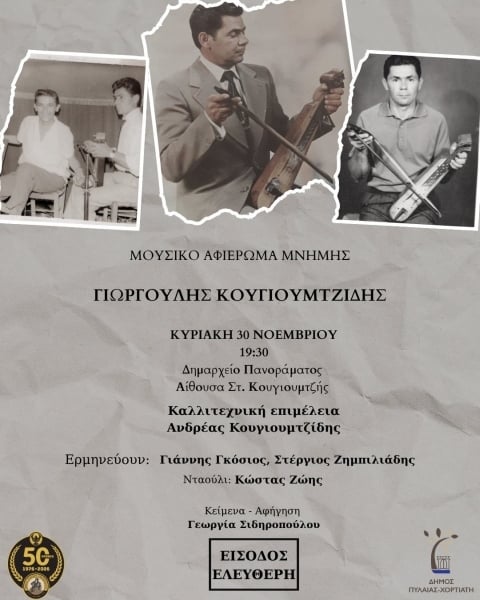 Η Ένωση Ποντίων Πανοράματος τιμά, την Κυριακή 30 Νοεμβρίου, στις 19:30, τον πρώτο λυράρη του συλλόγου τον Γιωργούλη Κουγιουμτζίδη μέσα από τα μάτια, τις μνήμες και τη λύρα του Ανδρέα Κουγιουμτζίδη.