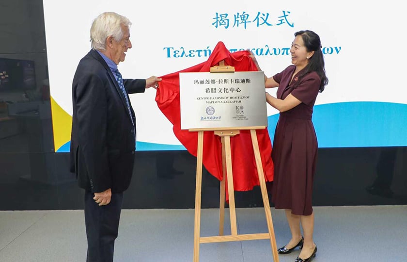 Κέντρο Νεοελληνικού Πολιτισμού «Μαριλένα Λασκαρίδη» εγκαινιάστηκε στο Πανεπιστήμιο Διεθνών Σπουδών της Σαγκάης (Shanghai International Studies University – SISU), στις 11 Οκτωβρίου, με πρωτοβουλία του Ιδρύματος Αικατερίνης Λασκαρίδη. Στην τελετή παρευρέθηκαν, μεταξύ άλλων, η πρόεδρος του Συμβουλίου του Πανεπιστημίου Yin Dongmei, η διευθύντρια του Τμήματος Νεοελληνικών Σπουδών Hu Jingjing, και από την πλευρά του Ιδρύματος, ο πρόεδρος Πάνος Λασκαρίδης και ο γενικός διευθυντής Κωνσταντίνος Μαζαράκης-Αινιάν.