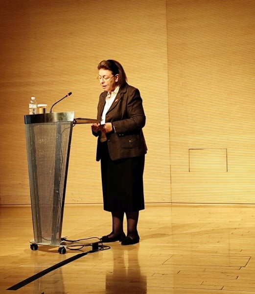 H υπουργός Πολιτισμού Λίνα Μενδώνη στην παρουσίαση της πύλης των ψηφιοποιημένων συλλογών κινητών αντικειμένων του πρώην βασιλικού κτήματος Τατοΐου (πηγή: facebook.com/ ΥΠ.ΠΟ)