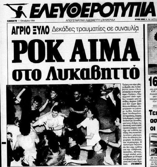 Επιστέγασμα αυτής φρενήρης επιτυχίας ήταν η περιβόητη «μαύρη συναυλία» της 20ης Σεπτεμβρίου 1994 στον Λυκαβηττό. Ο χώρος είναι ασφυκτικά γεμάτος, με πολύ κόσμο να αναγκάζεται να μείνει απ’ έξω. Χωρίς προφανή λόγο, θα φύγουν κάτι πέτρες από τα ψηλά, κάποιες άλλες θα τους επιστραφούν, το ίδιο θα συμβεί και από τους συγκεντρωμένους εκτός και ξαφνικά ο χώρος θα θυμίζει πεδίο μάχης. Ούτε η μπάντα δε θα γλιτώσει. Πέτρες, καρέκλες και λοστοί θα φύγουν προς τη σκηνή.