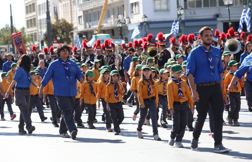 Αντιπροσωπευτικά τμήματα μαθητών και μαθητριών από όλα τα σχολεία του δήμου Αθηναίων παρέλασαν στο κέντρο της πόλης, περνώντας μπροστά από το μνημείο του Άγνωστου Στρατιώτη και το ελληνικό Κοινοβούλιο, συνοδεία της φιλαρμονικής ορχήστρας του δήμου Αθηναίων.