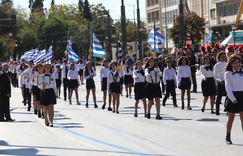 Πλήθος κόσμου παρακολούθησε τη μαθητική παρέλαση στο κέντρο της Αθήνας, για τον εορτασμό της Εθνικής Επετείου της 28ης Οκτωβρίου, η οποία ολοκληρώθηκε λίγο νωρίτερα.