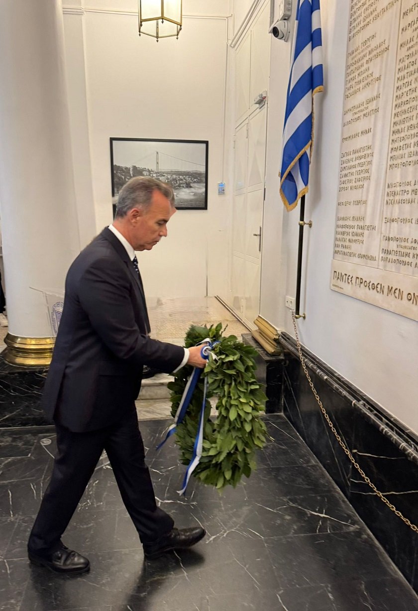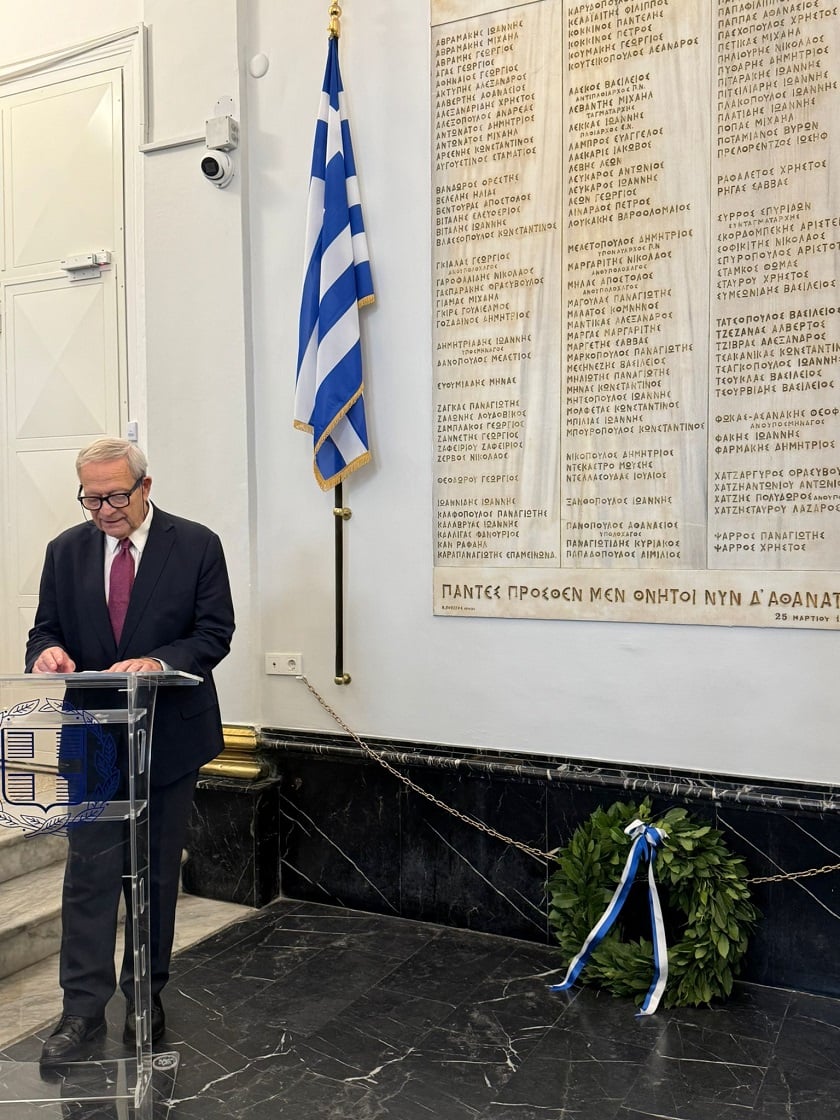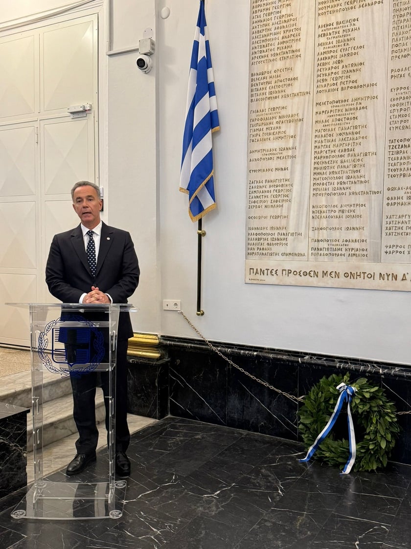 Κατά την προσφώνησή του, ο πρέσβης Κωνσταντίνος Κούτρας απηύθυνε μήνυμα ενότητας, εθνικής υπερηφάνειας και ιστορικής μνήμης, υπογραμμίζοντας ότι το «ΟΧΙ» του 1940 παραμένει ορόσημο ελευθερίας και παράδειγμα ηρωισμού και αντίστασης απέναντι σε κάθε μορφή βίας και ολοκληρωτισμού. Ο πρέσβης σημείωσε ακόμη ότι η γνώση του παρελθόντος και η συνείδηση της Ιστορίας αποτελούν πυξίδα για τη διαμόρφωση του μέλλοντος της χώρας.