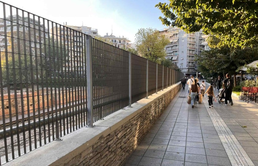 Συνεργεία βρέθηκαν στο σημείο και έβγαλαν τα κάγκελα, «απελευθερώνοντας» εκ νέου τα αρχαία. Αποφασίστηκε να γίνουν κάποιες ενδεικτικές δοκιμαστικές τοποθετήσεις σε ένα – δύο σημεία του μνημείου, ώστε να μελετηθεί ποια θα είναι η πλέον κατάλληλη επιλογή τόσο για την προστασία του, όσο και για την ανάδειξή του, χωρίς να εμποδίζεται η θέα από τους επισκέπτες και τους περαστικούς.