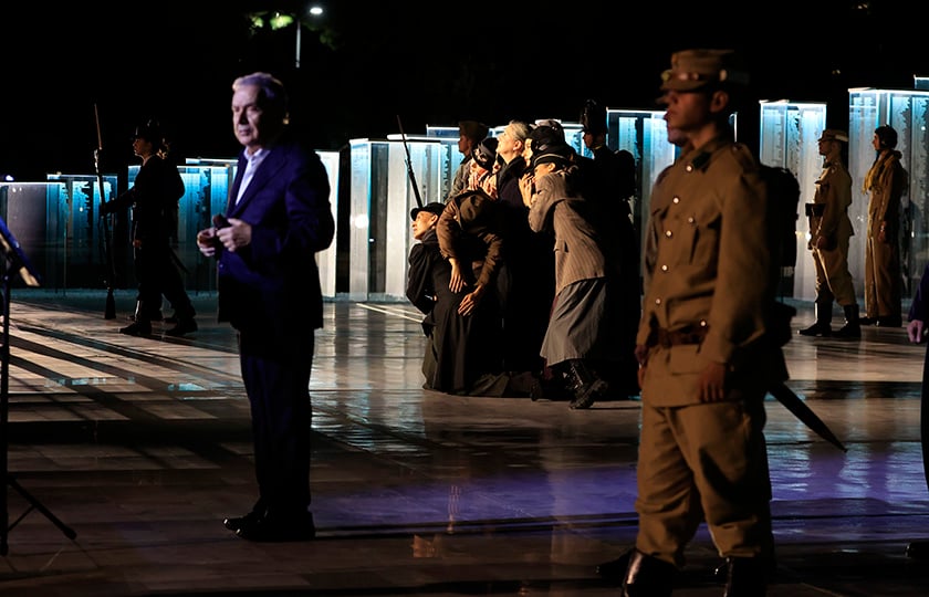 Χορευτές συμμετέχουν σε δρώμενο στην τελετή των αποκαλυπτηρίων (φωτ.: ΑΠΕ-ΜΠΕ / Γιώργος Βιτσάρας)
