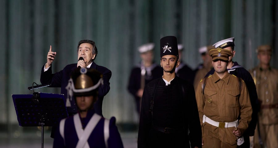Μεταξύ των αποσπασμάτων που απαγγέλθηκαν ήταν και στίχοι του Διονύση Σαββόπουλου, και συγκεκριμένα από τα τραγούδια του «Ο γιος μου πάει στο στρατό ενώ εγώ δεν πήγα», αλλά και από τον «Μικρό μονομάχο».