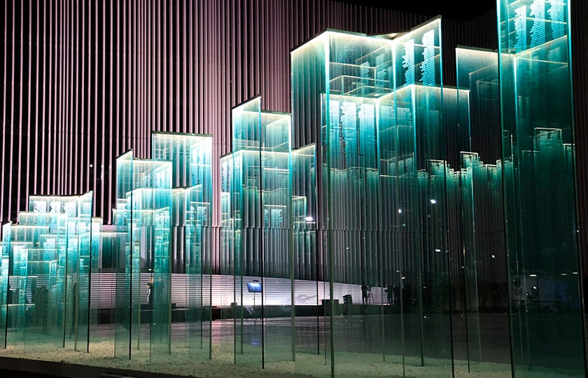 «Σήμερα εγκαινιάζουμε ένα θαύμα. Στη ζωή όλων μας γίνονται μικρά και μεγάλα θαύματα. Εδώ ζούμε ένα άλλο θαύμα που έχει πολλαπλές σημασίες», τόνισε ο αρχιτέκτονας του έργου, ο διεθνούς φήμης γλύπτης Κώστας Βαρώτσος. Αναφερόμενος στο έργο της πρόσοψης, είπε πως «αυτή είναι μια πρόταση πολιτισμική ενός θεσμού του ελληνικού κράτους. Αυτό πρέπει να κάνουν οι θεσμοί. Οι θεσμοί πρέπει να εκφράζουν την πολιτισμική παραγωγή της γεωγραφικής περιοχής που λέγεται Ελλάδα».