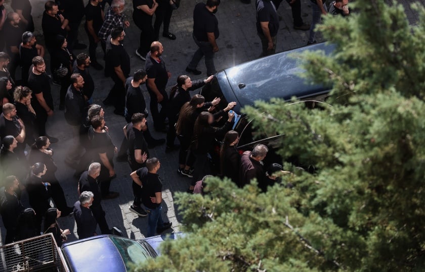 Κατά τη μεταφορά της σορού από το σπίτι προς την εκκλησία, η πομπή σταμάτησε για λίγο στο σημείο όπου εκτυλίχθηκε το μακελειό, με μέλη της οικογένειας του 39χρονου να ξεσπούν σε λυγμούς και φωνές.