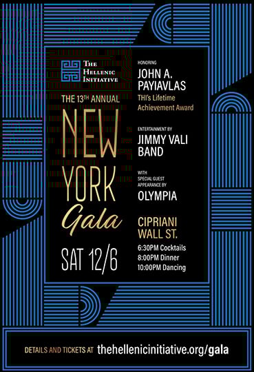 Στις 6 Δεκεμβρίου 2025, η Hellenic Initiative (THI) θα διοργανώσει το 13ο ετήσιο Gala της Νέας Υόρκης στο πολυτελές Cipriani Wall Street. Η εκδήλωση έχει καθιερωθεί ως ένα από τα σημαντικότερα γεγονότα για τους Έλληνες της διασποράς, συγκεντρώνοντας επισκέπτες από όλο τον κόσμο για να στηρίξουν προγράμματα στην Ελλάδα.