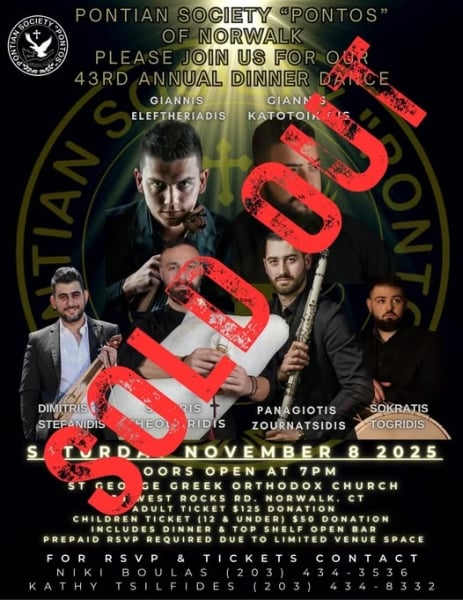 Ξεπούλησαν τα εισιτήρια για τον 43ο ετήσιο χορό που οργανώνει η Ποντιακή Κοινότητα Νόργουοκ «Ο Πόντος» το Σάββατο 8 Νοεμβρίου, με καλεσμένους απευθείας από την Ελλάδα.