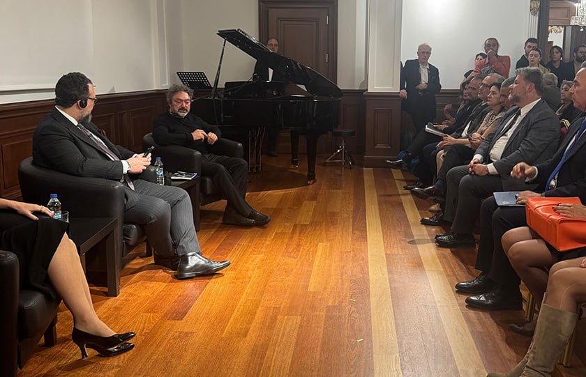 Όπως ανέφερε, «ο Θεοδωράκης υπήρξε γεφυροποιός, πιστεύοντας ακράδαντα ότι η τέχνη και ιδίως η μουσική μπορούν να ενώσουν εκεί όπου η ιστορία ή η πολιτική συχνά χωρίζουν». Κλείνοντας, ο γενικός πρόξενος επισήμανε τη σημασία του διαλόγου και της συνεργασίας μεταξύ Ελλάδας και Τουρκίας, σημειώνοντας: