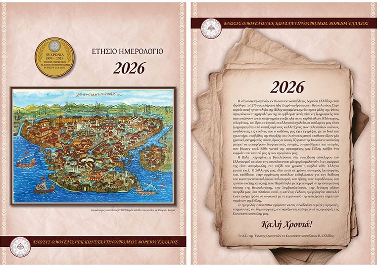 Ένωσις Ομογενών εκ Κωνσταντινουπόλεως Βορείου Ελλάδος: Κυκλοφόρησε το ημερολόγιο του 2026