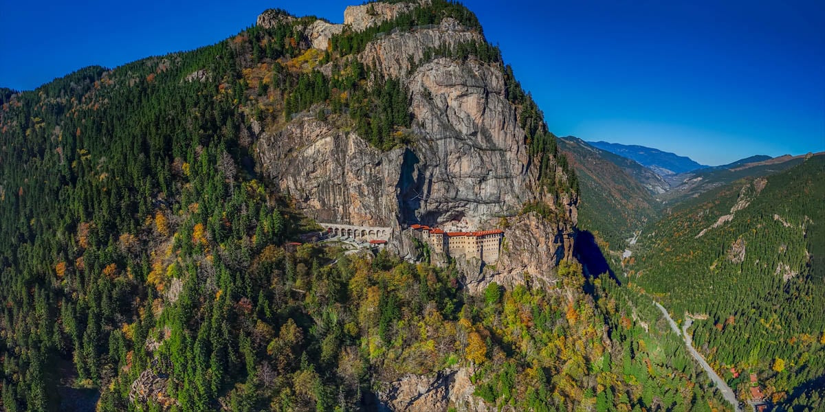 Το μοναστήρι της Παναγίας Σουμελά, σκαρφαλωμένο στον απότομο βράχο πάνω από την κοιλάδα, ιδρύθηκε γύρω στο 386 μ.Χ. από δύο Αθηναίους μοναχούς, τον Βαρνάβα και τον Σωφρόνιο. Για αιώνες υπήρξε τόπος προσευχής και μάθησης, σύμβολο πίστης για τους Πόντιους. Αναστηλωμένο πλέον, υποδέχεται χιλιάδες επισκέπτες κάθε χρόνο.