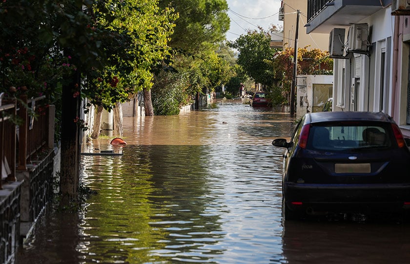 Δυνάμεις της Πυροσβεστικής απεγκλωβίζουν οικογένειες από πλημμυρισμένα σπίτια ενώ πραγματοποιούνται από τις δυνάμεις της πολιτικής προστασίας επιχειρήσεις διάνοιξης δρόμων.