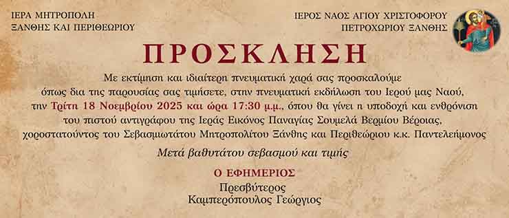 Το πιστό αντίγραφο θα ενθρονιστεί στο ναό του Αγίου Χριστοφόρου, εκεί όπου της ιερής ακολουθίας θα χοροστατήσει ο σεβασμιώτατος. Στο κήρυγμά του αναμένεται να υπογραμμίσει τη σημασία της Παναγίας Σουμελά ως σύμβολο πίστης, ελπίδας και προσφυγικής μνήμης.
