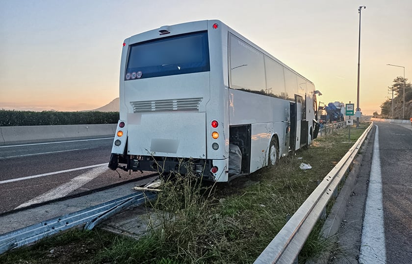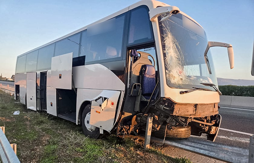 Σοβαρό τροχαίο σημειώθηκε στις 5:30 το πρωί του Σαββάτου στο ύψος της Υλίκης, όταν τουριστικό λεωφορείο προσέκρουσε πάνω σε μπάρες.