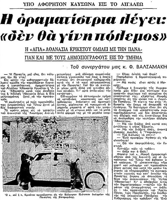 Την ίδια περίοδο συγκρούεται με τον αρχιμανδρίτη Ελευσίνας, ενώ η Ιερά Σύνοδος το 1967 αποφαίνεται ότι «πρόκειται περί επιτηδείας αγύρτιδος».