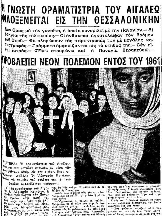 Και το σίριαλ συνεχίζεται. Το 1961 καλεί τους δημοσιογράφους, τις Αρχές και τον προϊστάμενο του Αρείου Πάγου, για να τους φέρει σε επαφή με την Παναγία στο λόφο του Αιγάλεω. Συλλαμβάνεται για παράνομη συγκέντρωση. Στο τμήμα λέει ότι στη στάση Κουνέλια κοντά στο Χαϊδάρι της έδωσε εντολή η Παναγία να χτίσει μια εκκλησία.