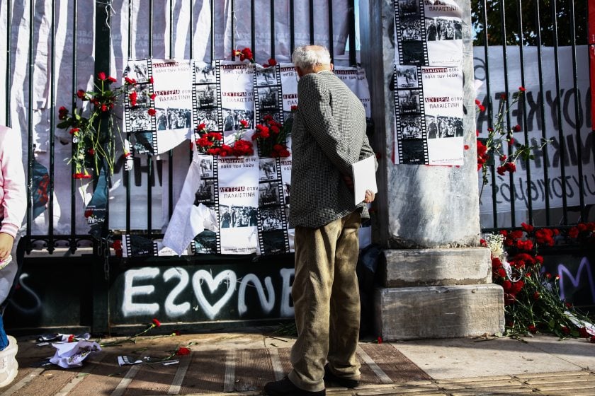 Από το πρωί της Δευτέρας το ιστορικό συγκρότημα του Εθνικού Μετσόβιου Πολυτεχνείου στην Πατησίων γέμισε με κόσμο. Οικογένειες με παιδιά απέτιναν φόρο τιμής στους φοιτητές που αντιστάθηκαν στη δικτατορία των συνταγματαρχών ενώ όπως κάθε χρόνο στο σημείο βρέθηκαν αρχηγοί και εκπρόσωποι πολιτικών κομμάτων, φορέων και συλλόγων.