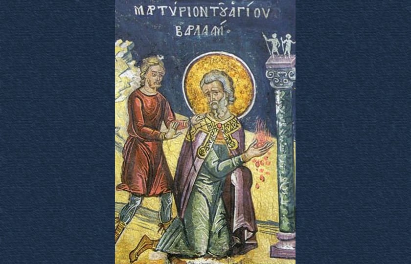 Όμως, ο κριτής υπολόγισε χωρίς να γνωρίζει τη δύναμη της πίστης. Ο Βαρλαάμ στάθηκε ακίνητος σαν βράχος. Κρατούσε το καυτό κάρβουνο στα χέρια του χωρίς να κουνιέται ούτε στιγμή, σαν να μην ένιωθε τον φρικτό πόνο. Τα δάχτυλά του άρχισαν να λιώνουν, η παλάμη του να καίγεται ολοσχερώς, όμως, εκείνος δεν εγκατέλειψε την απόφασή του, ούτε στράφηκε προς τα άψυχα ξόανα.