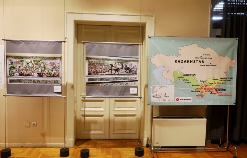 Από τη Σαμαρκάνδη, όπου ο Αλέξανδρος γνώρισε τη σύζυγό του Ρωξάνη, έως τις δύο εμβληματικές Αλεξάνδρειες της Κεντρικής Ασίας -από τις τουλάχιστον τριάντα που ίδρυσε συνολικά- οι εικόνες της έκθεσης ζωντανεύουν σημεία που συνδέθηκαν με τη δράση του. «Αυτή είναι η εικόνα από τη σημερινή Αλεξάνδρεια επί του Ώξου, του μεγαλύτερου ποταμού της Ασίας, και ό,τι ανέδειξε η αρχαιολογική σκαπάνη», σημειώνει ο κ. Γαβριηλίδης, δείχνοντας τη φωτογραφία που αποτελεί και την αφίσα της έκθεσης. «Το υπουργείο Πολιτισμού του Ουζμπεκιστάν αναστήλωσε ένα κτήριο της αρχαίας πόλης και τοποθέτησε μια πινακίδα που γράφει “Αναστηλωμένο κτήριο Ώξου Αλεξάνδρεια”», προσθέτει.