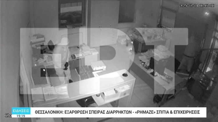 Σε νέο βίντεο που κατέγραψε κάμερα ασφαλείας και παρουσιάστηκε από την ΕΡΤ, φαίνονται τα μέλη της ομάδας να αποχωρούν με άνεση από εγκαταστάσεις εταιρείας που είχαν μόλις διαρρήξει στην ανατολική Θεσσαλονίκη. Λίγα λεπτά νωρίτερα είχαν ψάξει εξονυχιστικά τα γραφεία για μετρητά ή αντικείμενα αξίας. Σε άλλη επιχείρηση, στη δυτική Θεσσαλονίκη, εγκατέλειψαν το σημείο σχεδόν χωρίς λεία, αφού δεν βρήκαν όσα προσδοκούσαν.