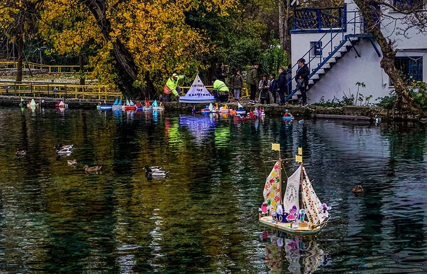 Η πόλη της ανατολικής Μακεδονίας «φοράει» τα γιορτινά της και τα παιδιά αφήνουν φωτισμένα καραβάκια στη λίμνη, κάνοντας ευχές