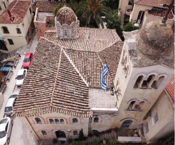 Ο ναός δεσπόζει στη γειτονιά της Ακρόπολης και συνδέεται παραδοσιακά με την οικογένεια του αυτοκράτορα Μιχαήλ Α’ Ραγκαβέ.