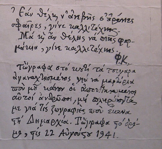 «Το ’γραψα στο κουτί τα τσιγάρα αγαναχτισμένος…». Δεν είναι λογοτεχνικό εύρημα. Είναι κραυγή. Ένα σημείωμα του Φώτη Κόντογλου πάνω σε άδειο πακέτο τσιγάρων, γραμμένο στις 12 Αυγούστου 1941, για να μείνει η αδικία χαραγμένη σε κάτι που δεν το παίρνει εύκολα ο αέρας.