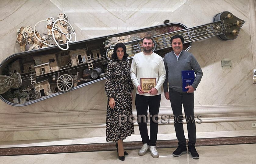 Ιδιαίτερη εντύπωση προκάλεσε στους επισκέπτες το έργο του Παναγιώτη Τανιμανίδη, με την περίτεχνη ποντιακή λύρα που κοσμεί την είσοδο του μεγάρου – ένα εικαστικό σύμβολο που συνδέει την ποντιακή μνήμη και τη σύγχρονη καλλιτεχνική δημιουργία.