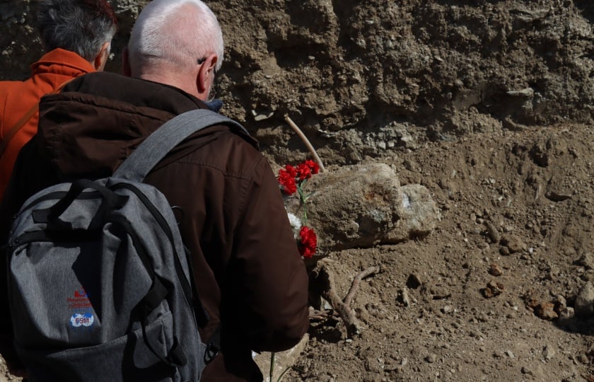 Λίγα λουλούδια στη μνήμη των νεκρών που βρέθηκαν στον ομαδικό τάφο (φωτ.: Δήμος Νεάπολης-Συκεών)