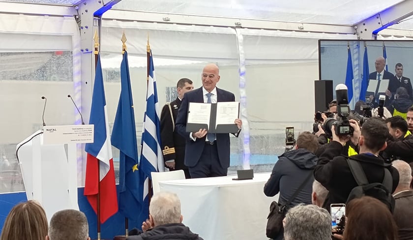 Η τελετή στα ναυπηγεία της Naval Group, στη Λοριάν της Γαλλίας ξεκίνησε λίγο μετά τις 14:30 με τον αγιασμό, τμήμα του οποίου εψάλη και στη γαλλική γλώσσα, και στις 15:30 η γαλανόλευκη κυμάτιζε πάνω στο υπερσύγχρονο πολεμικό σκάφος, υπό την ανάκρουση του Εθνικού Ύμνου.