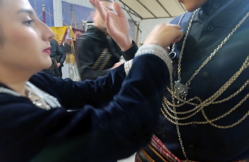 Αφού έφτασαν όλες οι αποστολές και συγκεντρώθηκαν οι συμμετέχοντες στον εξωτερικό χώρο του σταδίου «Γιάννης Μπουρούσης» «στεγάστηκαν» στα αντίσκηνα που είχαν δημιουργηθεί για κάθε ΣΠΟΣ. Εκεί τους περίμεναν κρύα σάντουιτς και νερά. Δεν είχε όμως προβλεφτεί επιλογή σνακ για τους χορευτές που έκαναν νηστεία, ενώ κάποιοι που δοκίμασαν αυτά που υπήρχαν, παραπονέθηκαν ότι βγήκαν κατευθείαν από το ψυγείο και σε συνδυασμό με τη χαμηλή θερμοκρασία, τους δημιούργησαν ενόχληση στο στομάχι.