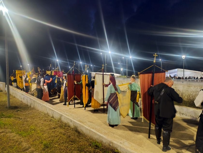 Ας μιλήσουμε όμως για τους μεγάλους πρωταγωνιστές της βραδιάς, για την ψυχή του Φεστιβάλ, τους χορευτές του! Η είσοδος των 1.500 χορευτών ηλικιακού φάσματος από 16 μέχρι δεύτερα –ήντα με τον χορό εμπροπίσ’, τον πανελλήνιο συρτό, ήταν εντυπωσιακή.