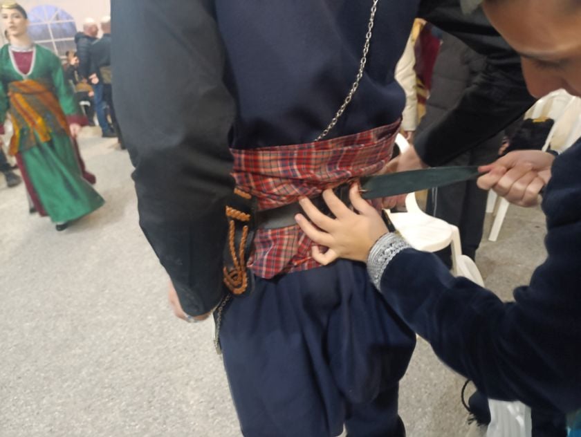 Περιμένοντας για πολλές ώρες μέχρι να εμφανιστούμε τελευταίοι ως «οικοδεσπότης» ΣΠΟΣ Κεντρικής Μακεδονίας και Θεσσαλίας, και προσπαθώντας να αποφύγουμε ιδίως εμείς οι γυναίκες χορεύτριες τα συμπτώματα υποθερμίας, σχηματίσαμε τους κύκλους και τις αλυσίδες που θα εμφανιζόμασταν. Το ηθικό ήταν ακμαιότατο και το κλίμα ενθουσιώδες. Τότε θυμήθηκε κάποιος από την ομάδα των 300 και πλέον χορευτών πως ήταν η ημέρα εορτής του Αγίου Ευστρατίου (13 Δεκεμβρίου). Όλοι μαζί ευχηθήκαμε στον αγαπητό μας συγχορευτή Στράτο Μπίλη, τον χοροδιδάσκαλο στους συλλόγους Ελευθερίου-Κορδελιού Θεσσαλονίκης, Χωρυγίου Κιλκίς, Αυγής Λαγκαδά, και έναν από τους δέκα πυρριχιστές που χόρεψαν στο βίντεο που συνόδευε τον φάκελο ένταξης στο Εθνικό Ευρετήριο Άυλης Πολιτιστικής Κληρονομιάς, «Χρόνια Πολλά!» και η φωνή μας σκέπασε τον ήχο της λύρας που ερχόταν από το εσωτερικό του σταδίου!
