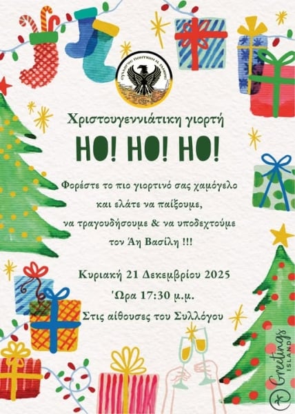 Κι εκτός από όλα αυτά, ο Άγιος Βασίλης θα μοιράσει δώρα στους μικρούς φίλους του σωματείου.