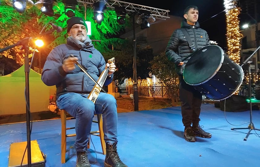 Τη βραδιά «έντυσαν» οι ήχοι της λύρας του Άρη Ευγενειάδη και του νταουλιού του Κωνσταντίνου Μουμτζίδη, οδηγώντας σε ένα αυθεντικό γλέντι.