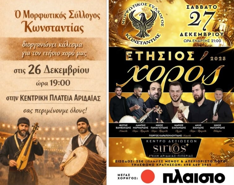 Τον ετήσιο χορό της οργανώνει αύριο, Σάββατο, ο Μορφωτικός Σύλλογος Κωνσταντίας και σήμερα θα πραγματοποιήσει κάλεσμα για όλους στην κεντρική πλατεία Αριδαίας, στις 19:00.